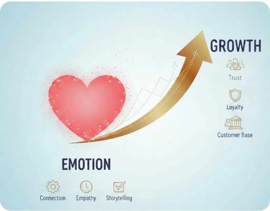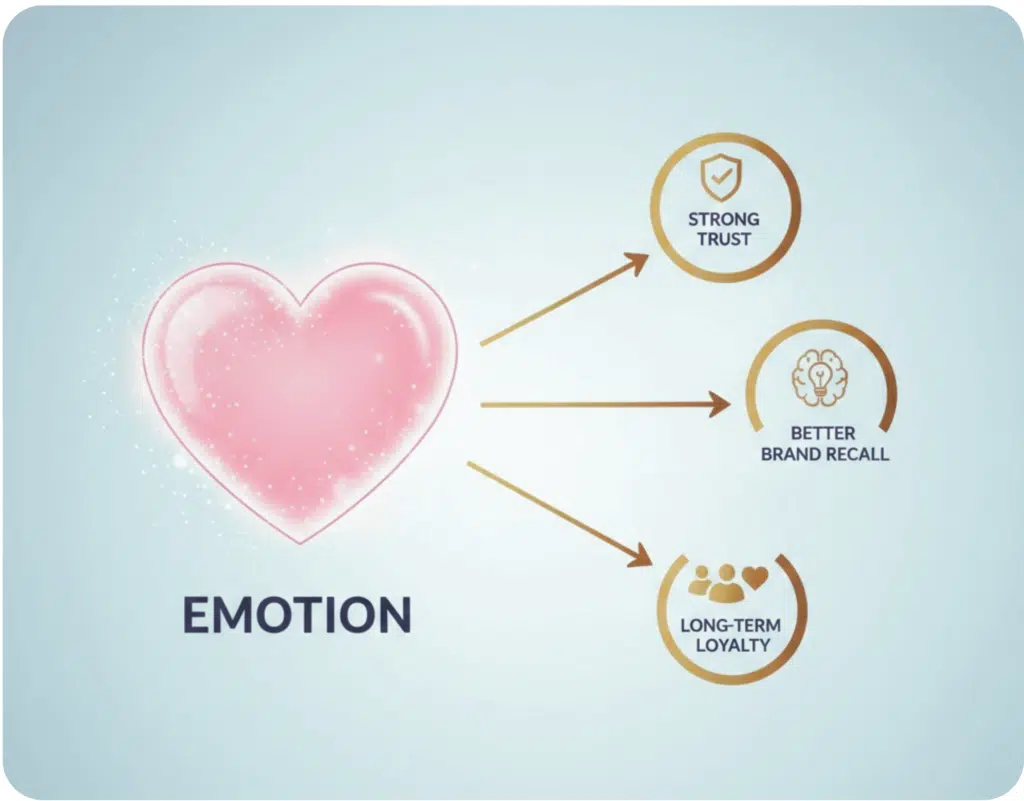 Emotion matters because people make decisions emotionally before they rationalize them logically. Brands that connect emotionally build stronger trust, higher recall, and longer-term loyalty—especially in service-based businesses.